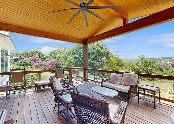 The nearest airport is San Antonio International and it is placed within 57 minutes' drive from Lakeside Serenity With Private Waterfront Access On Canyon Lake villa.